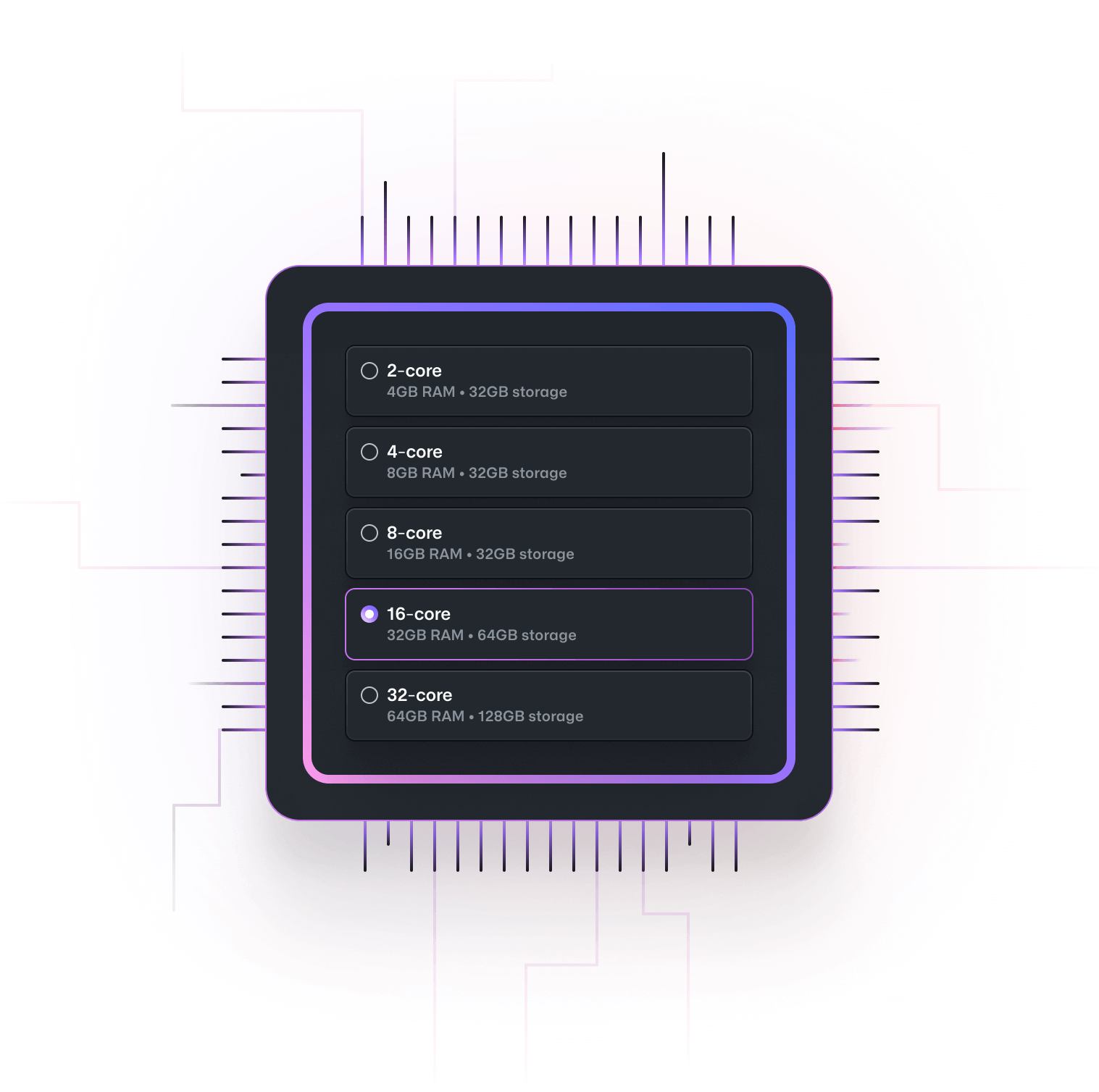 GitHub Codespaces run on a various VM-based compute options hosted by GitHub.com, which you can configure from 2 core machines up to 32 core machines. Connect to your codespaces from the browser or locally using an IDE like Visual Studio Code or IntelliJ.
