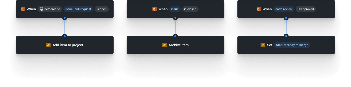 Accelerate your project planning with workflows. Automatically triage issues, set values for custom fields, and auto add or archive issues.