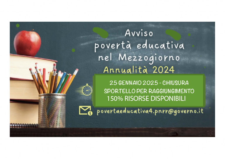 Avviso pubblico per la presentazione di proposte di intervento per la selezione di progetti socio-educativi strutturati per combattere la povertà educativa nel Mezzogiorno. ANNUALITA' 2024