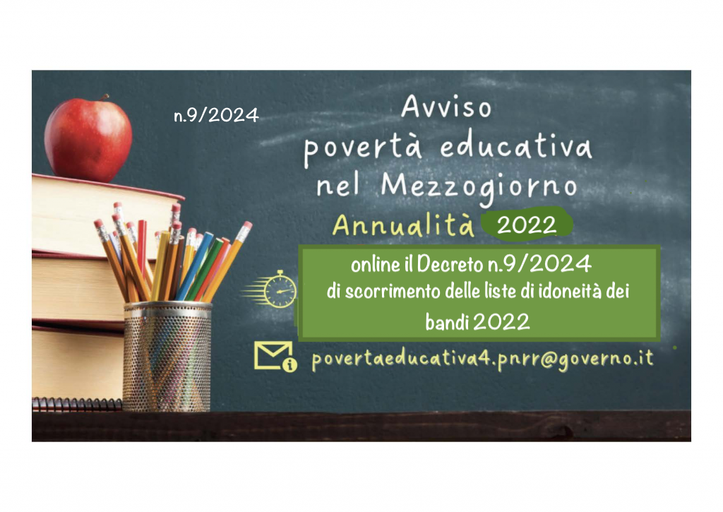 Avviso povertà educativa nel Mezzogiorno - Scorrimento liste idoneità annualità 2022
