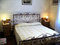 parquet ed al battiscopa in legno, oltre ai delicati colori delle pareti ed ai decori della volta conferiscono a questa camera un atmosfera unica di calore e di delicatezza che rende esclusivo e piacevole la permanenza ed il riposo degli ospiti.