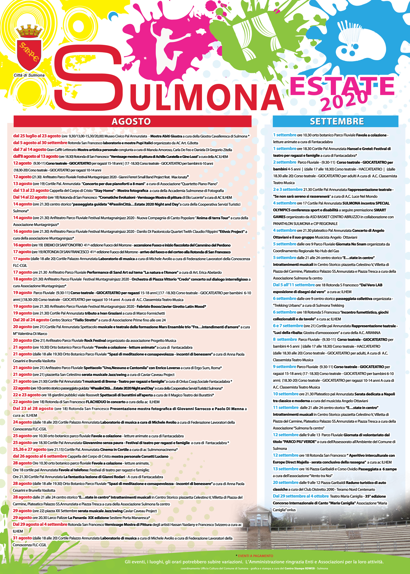 Ecco la programmazione degli eventi di agosto e settembre a Sulmona...