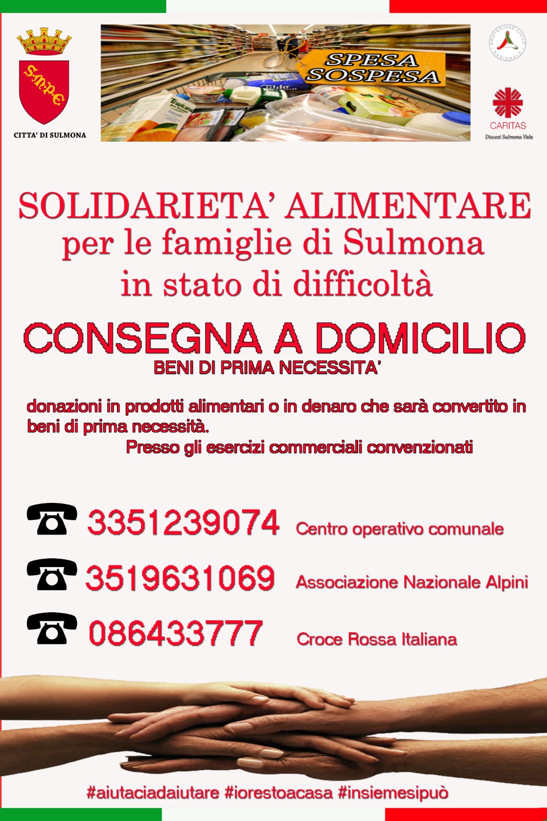 “Spesa Sospesa”. Si tratta di un progetto di solidarietà messo in campo dal Comune di Sulmona in collaborazione con la Caritas Diocesana e le associazioni di volontariato di Protezione Civile coinvolte nelle attività del COC, per incrementare la distribuzione dei pacchi alimentari alle famiglie che ne hanno bisogno.