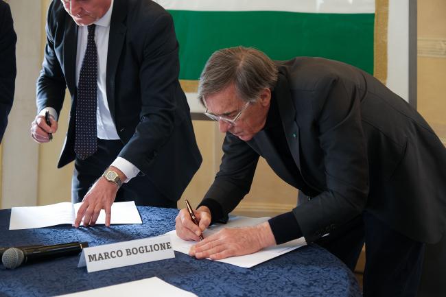 A Santena (Torino), presso la sede della Fondazione Camillo Cavour, il Ministro per la Pubblica amministrazione, senatore Paolo Zangrillo, e il presidente della Regione Piemonte, Alberto Cirio, hanno firmato il protocollo d’intesa, con Comune di Torino, Fondazione Cavour, Scuola nazionale dell’amministrazione, Università e Politecnico, sulla gestione del Polo formativo territoriale del Piemonte.