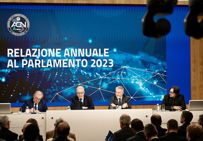 Si è svolta a Palazzo Chigi la conferenza stampa di presentazione della Relazione annuale al Parlamento dell’Agenzia per la Cybersicurezza Nazionale (ACN). Hanno partecipato il Sottosegretario alla Presidenza del Consiglio, Alfredo Mantovano, il Presidente del Comitato parlamentare per la sicurezza della Repubblica, Lorenzo Guerini, il Direttore generale dell’ACN, Bruno Frattasi, e Marco Camisani Calzolari, docente universitario e autore di diversi saggi sul marketing e la comunicazione digitale.