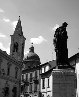 One of the main squares of the city, including a bronze statue of the Roman poet Ovid.