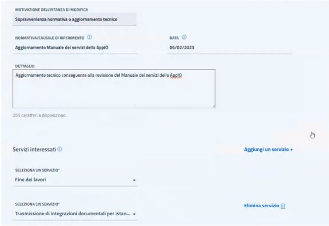 Nel campo Dettaglio, inserisci la seguente dicitura “Aggiornamento tecnico conseguente alla revisione del Manuale dei servizi della AppIO”
